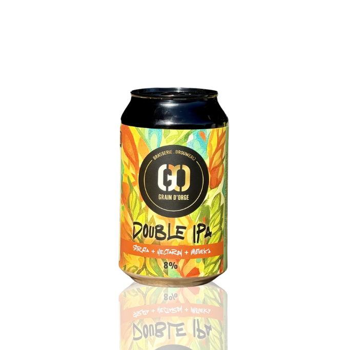GO DIPA 8 % – CAN : This delicious Double IPA is characterized by its hoppy aromas thanks to dry hopping. We have selected the following hops for an optimal DIPA: Nectaron, Strata, and Motueka. The result is a full-bodied beer with a rich aroma and tropical nuances. Limited edition by Grain d’Orge.